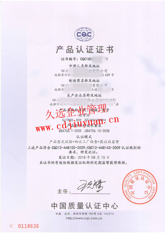 中國(guó)CCC認(rèn)證證書(shū)
